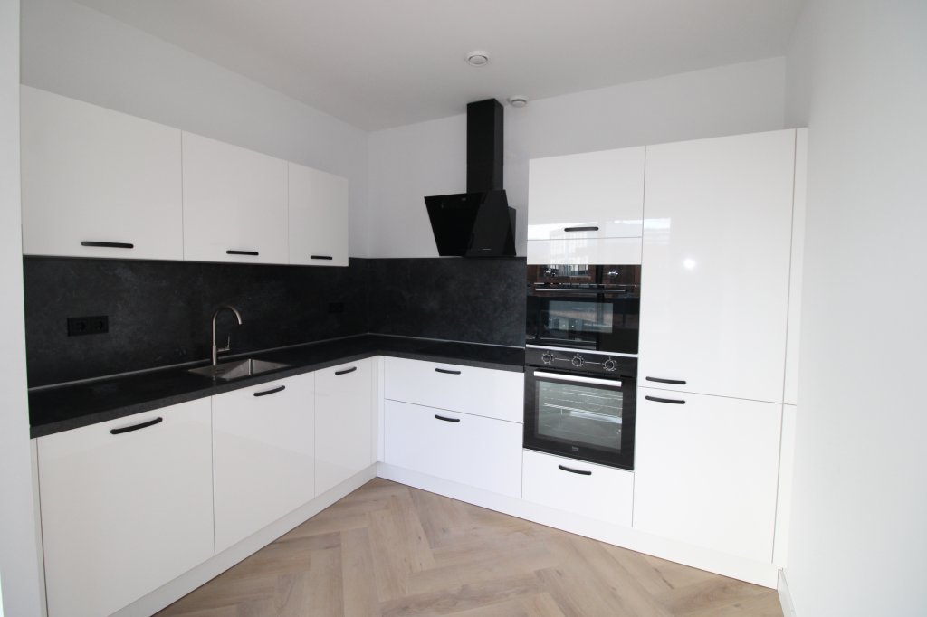 Almere City Centre – Upholstered modern apartment (new kitchen, herringbone flooring, plastered walls) 2 bedrooms, balcony, lift, and private parking included!