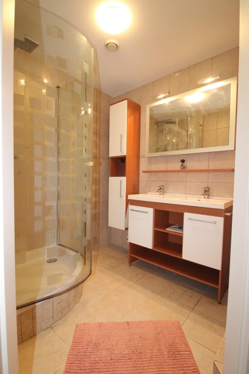 On the first floor, you will find three bedrooms, a second separate toilet, and the bathroom, equipped with a shower, washbasin with cabinet, and mirror. This floor offers ample space for both sleeping and working.