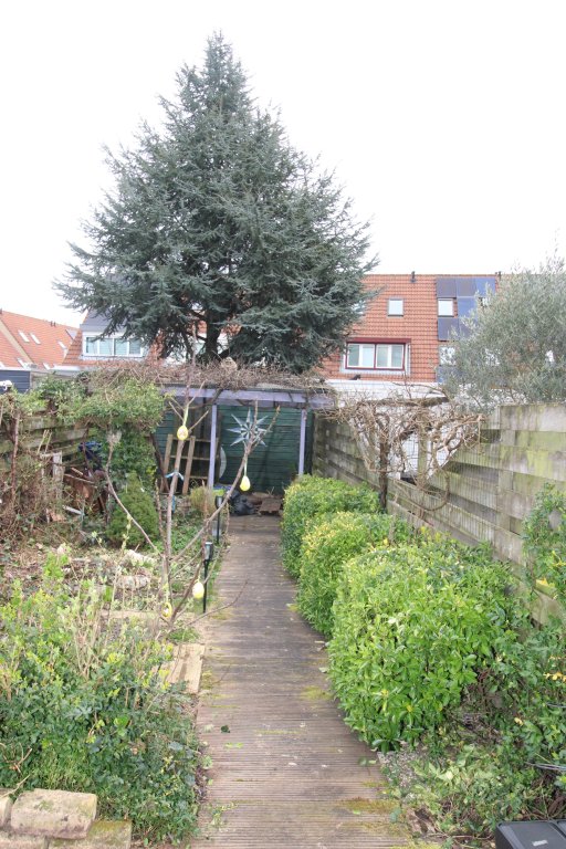 Upon entering, you step into the hallway. From here, you reach the living room, a bright and inviting space, directly connected to the kitchen. The kitchen is equipped with various built-in appliances: dishwasher, new combination microwave/oven, and electric hob, making cooking a pleasure. From the living room, you can access the backyard, a pleasant outdoor space for relaxing or gardening. The backyard also features a storage shed, perfect for extra storage of bicycles, garden tools, or other items. On the ground floor, there is also a separate toilet.