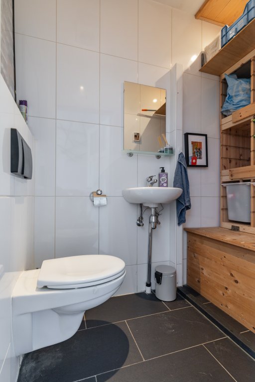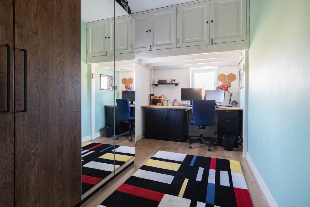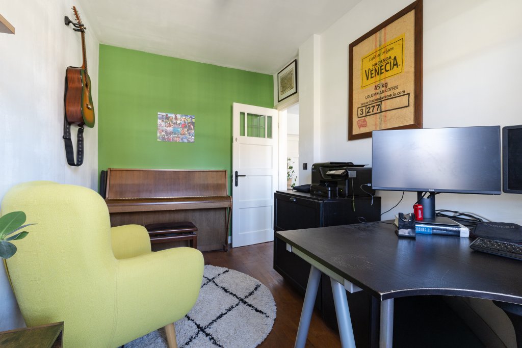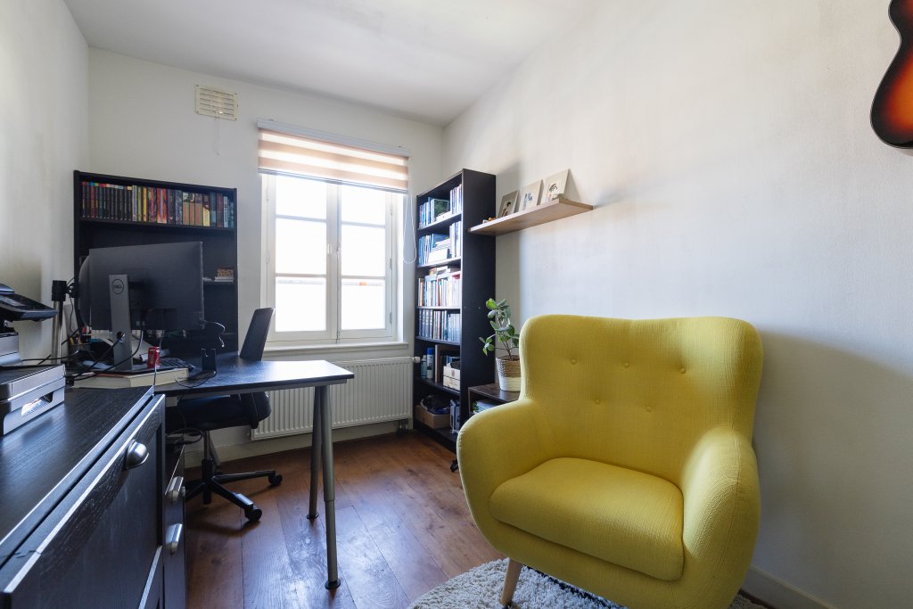 This living floor also features a bedroom, ideal as a workspace. Additionally, there is a separate toilet.