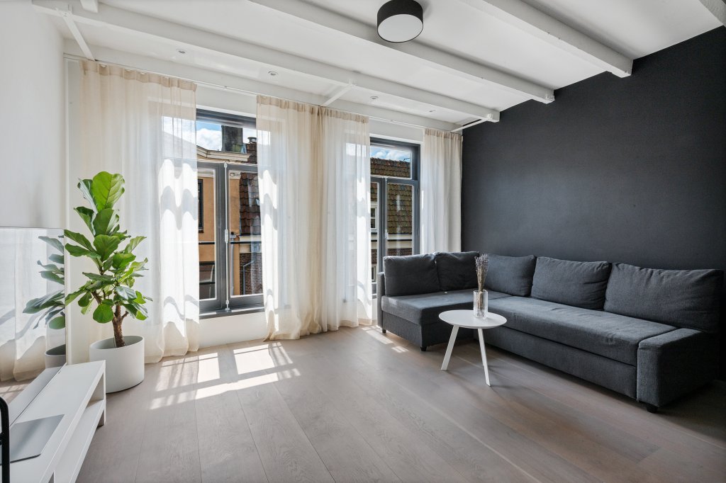 Experience luxury and comfort in this beautifully renovated double-upper apartment of approximately 78 m², located on a quiet and charming street in the heart of the Jordaan. The property is fully furnished, move-in ready, and features a sunny private roof terrace facing southwest.