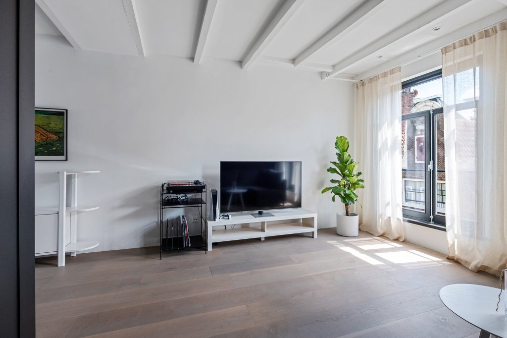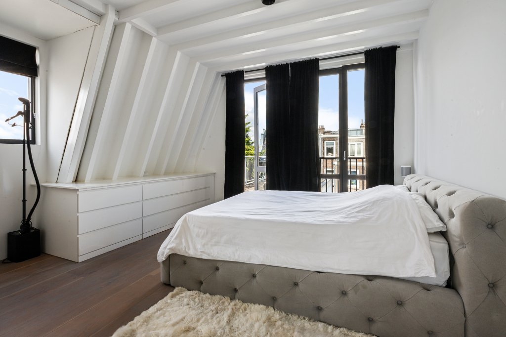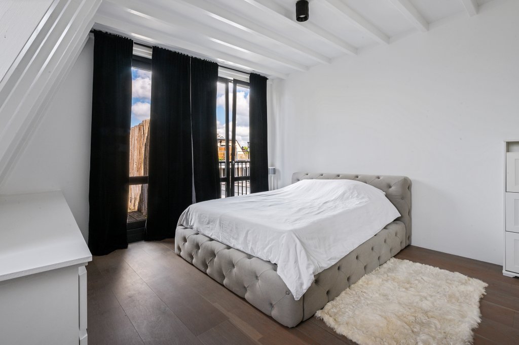 There are two bedrooms: a spacious master bedroom on the top floor and a second room that is ideal as a home office or guest room. From the master bedroom, you have direct access to the private roof terrace of approximately 7 m², complete with water and power connections. It’s the perfect spot to enjoy the sun or unwind at the end of the day with rooftop views over the Jordaan.