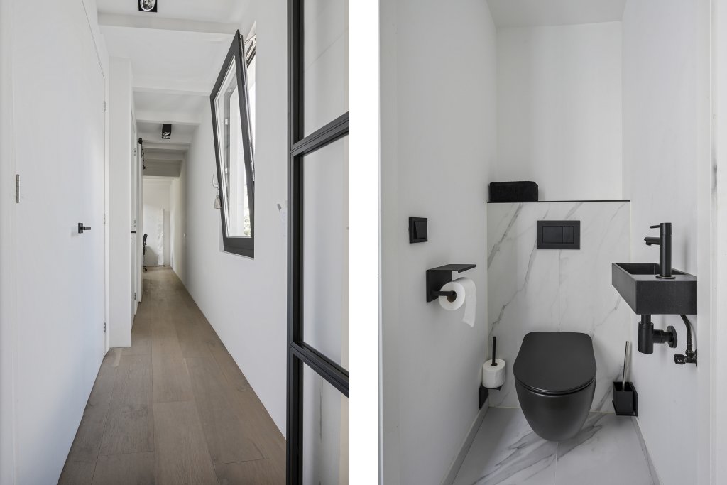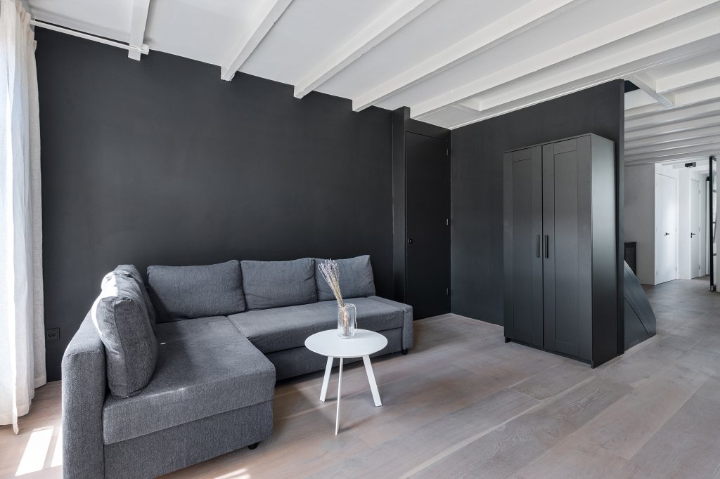 Fully gas-free and sustainable thanks to a modern heat pump. Underfloor heating throughout beneath solid oak flooring. High-end finishes with black steel accents. Fully furnished, including a fully equipped designer kitchen. Located on the upper floors with a private entrance and no upstairs neighbors.