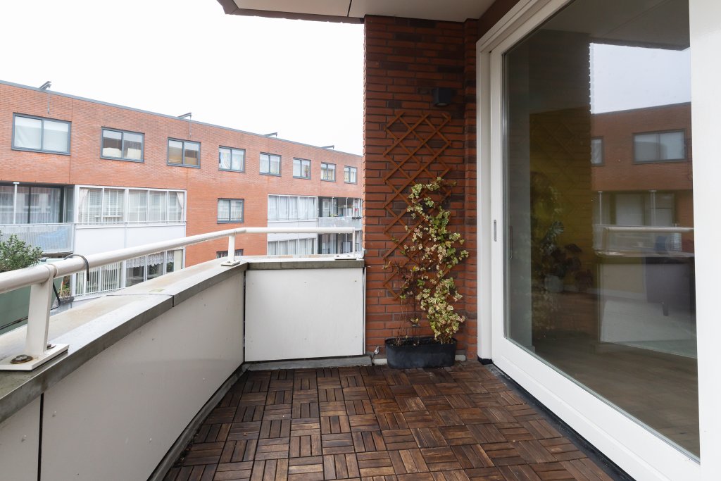 The spacious and colorful living room with open kitchen offers plenty of daylight and a pleasant atmosphere thanks to the large windows. A nice space to relax or entertain guests. The open kitchen fits in perfectly and is equipped with modern built-in appliances. Cooking here is a pleasure, partly due to the practical layout and direct access to the balcony: a wonderful place for a cup of coffee in the morning or a moment of peace at the end of the day.
