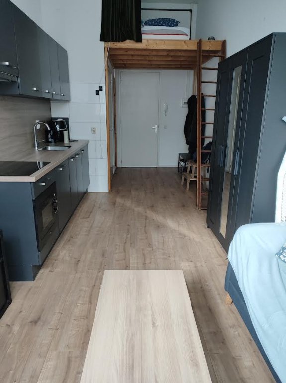 An independent studio in the heart of Apeldoorn. The property has a sleeping loft and will be delivered (partly) furnished. With flooring, loft, and (roller) curtains.