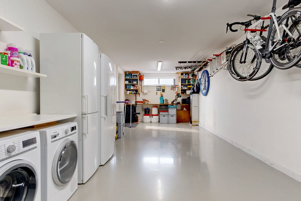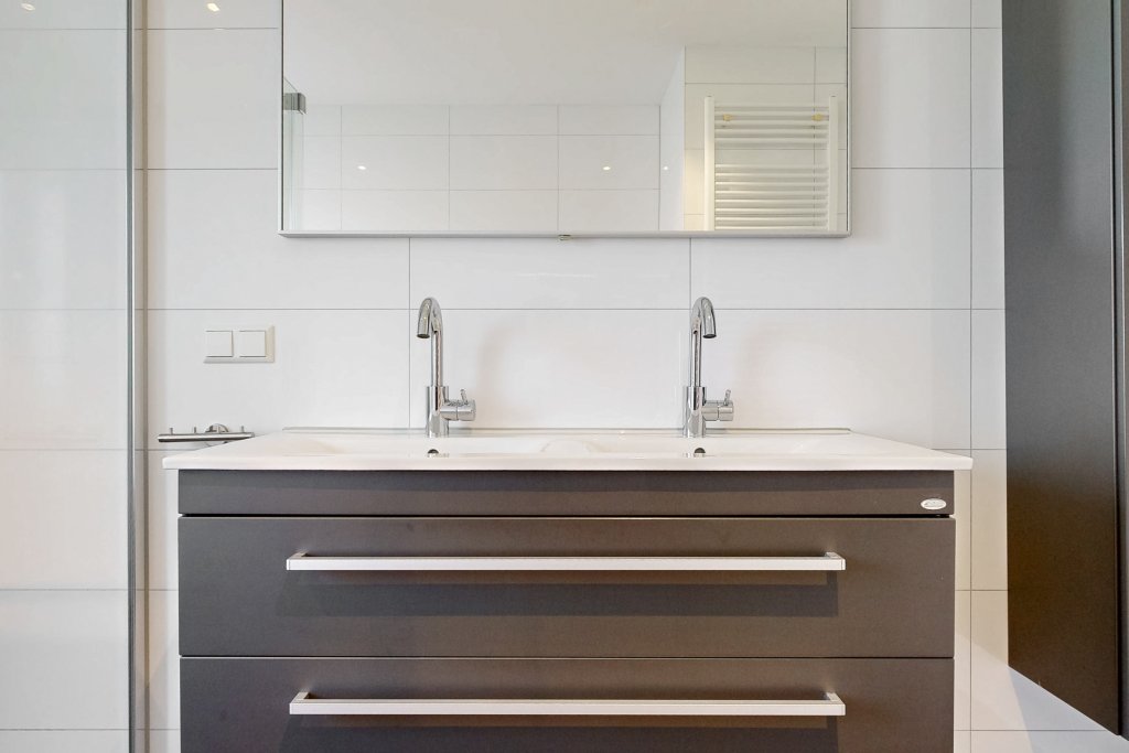 De hal biedt ruimte aan de meterkast, een kapstok, een modern wandtoilet met wastafel en toegang tot de garage. Vanuit de hal is er toegang tot de ruime woonkamer met open keuken.