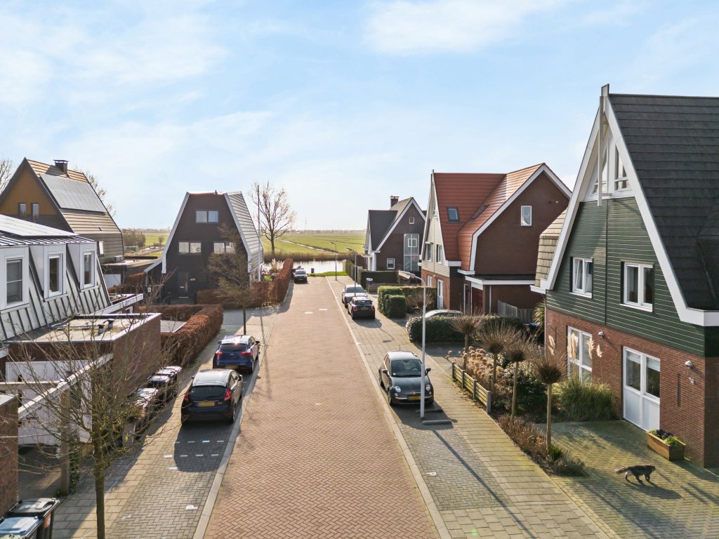 De beschutte achtertuin grenst direct aan open water, wat deze plek bijzonder maakt. Hier kunt u een kleine boot aanmeren en in de winter – als er voldoende vorst is – kunt u vanuit de tuin zo het ijs op stappen. Een unieke combinatie van rust, ruimte en wonen aan het water.