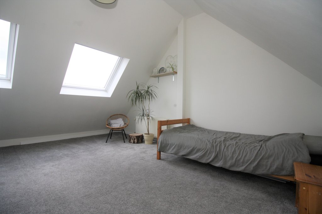 The 2nd floor has a spacious 4th bedroom with a single bed and wardrobe. The washing machine with drying facilities is also located in the attic.