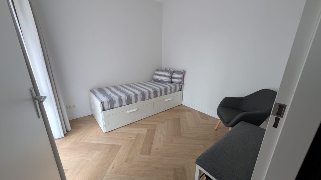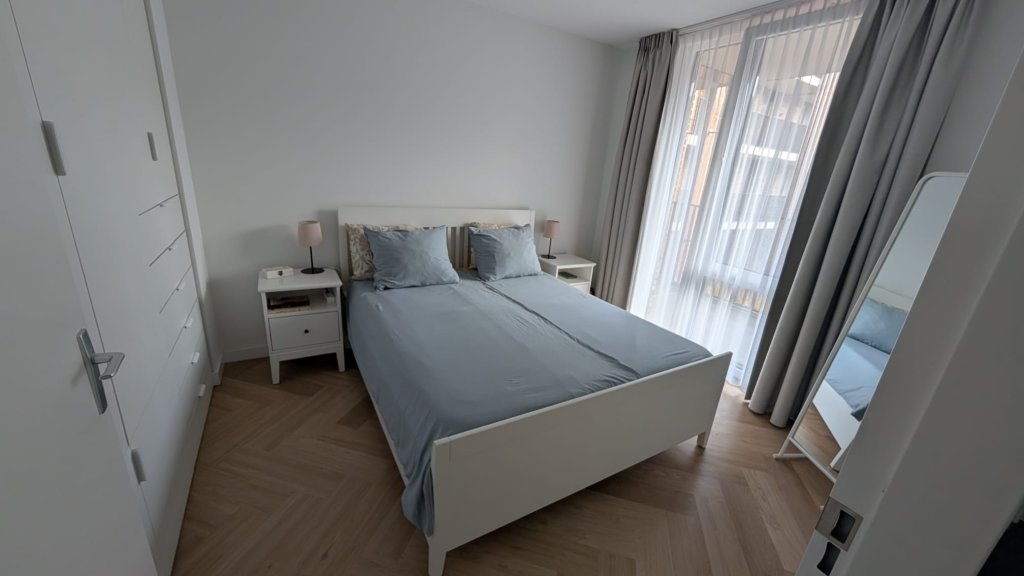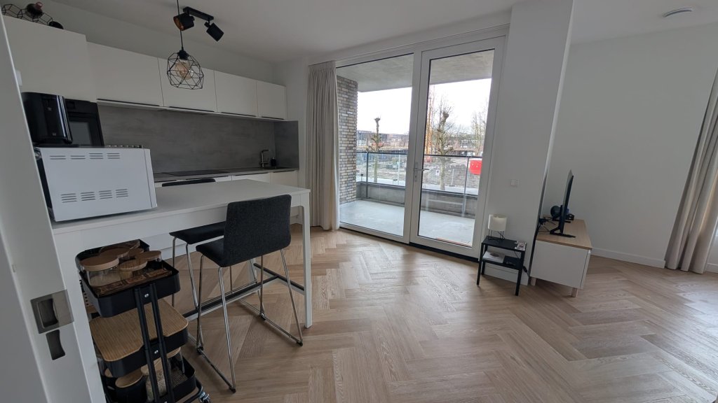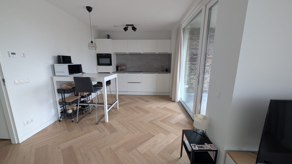 Two bedrooms, a beautiful living room with high-end kitchen and lots of natural daylight, bathroom with washbasin, walk-in shower and a lovely balcony, private storage room and private parking make these apartments a pleasure to live in. Beautiful herringbone PVC flooring and sleek plastered walls.