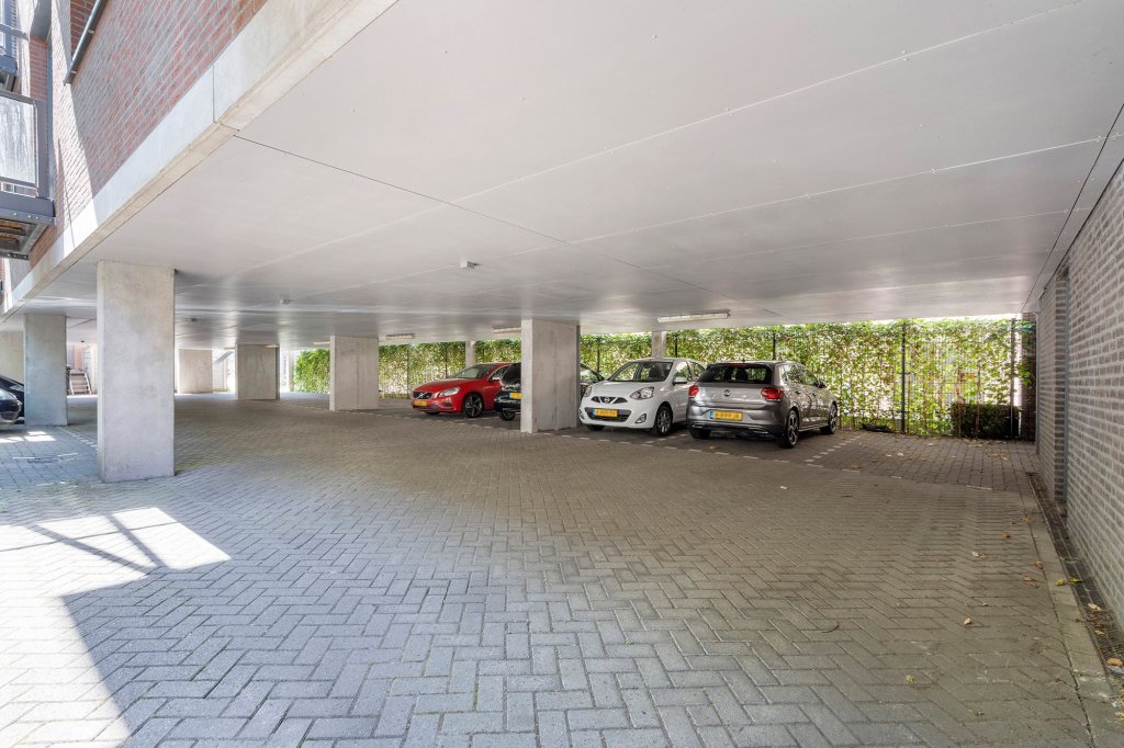 This flat is part of the small-scale apartment complex “ 't Fort”, which is located in a central but quiet location, just on the edge of the centre of Breda. A wide variety of shops, restaurants, cafés, cultural facilities and the lively Nieuwe Haven harbour are all within walking distance. The Albert Heijn supermarket is just a stone's throw away. The station (NS and bus) is also a 10-minute walk and 5-minute bike ride away. On the ground floor, there is a private parking space in the enclosed car park, accessible via an electric lockable gate.