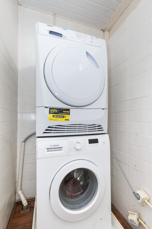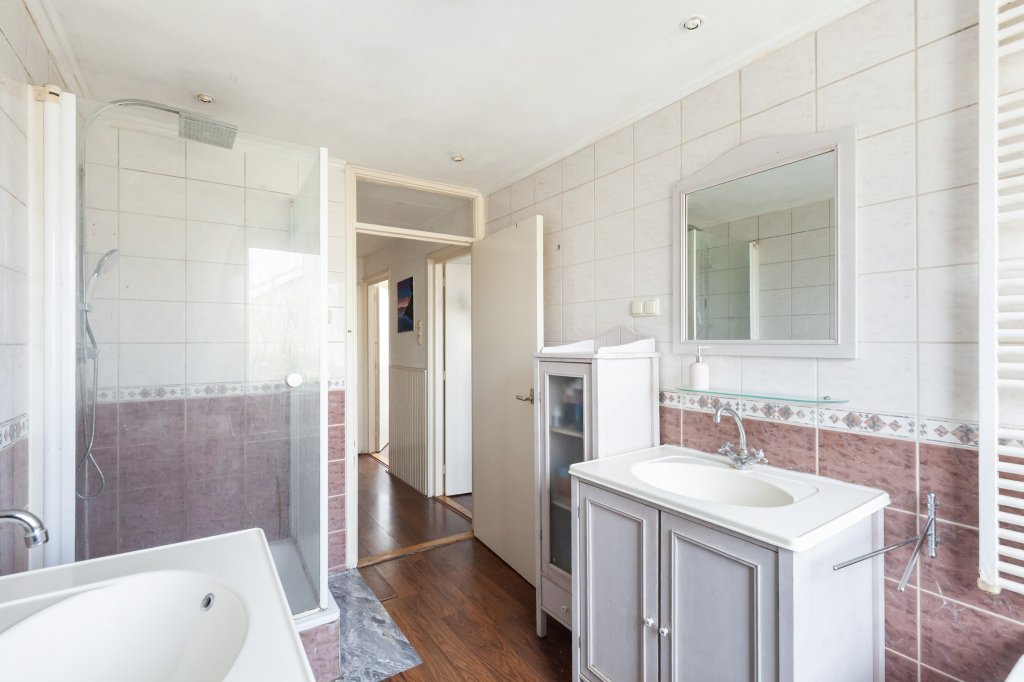 At the rear is the open-plan kitchen, laid out in a practical way. The kitchen is fitted with various built-in appliances, including a cooker with oven and hob, extractor hood, fridge and a dishwasher. From the kitchen, there is a lovely connection to both the living room and the garden. The back garden is a wonderful place to enjoy the outdoors. Thanks to the depth of the garden, there is always a lovely spot to be found to enjoy the sun or, conversely, the shade.