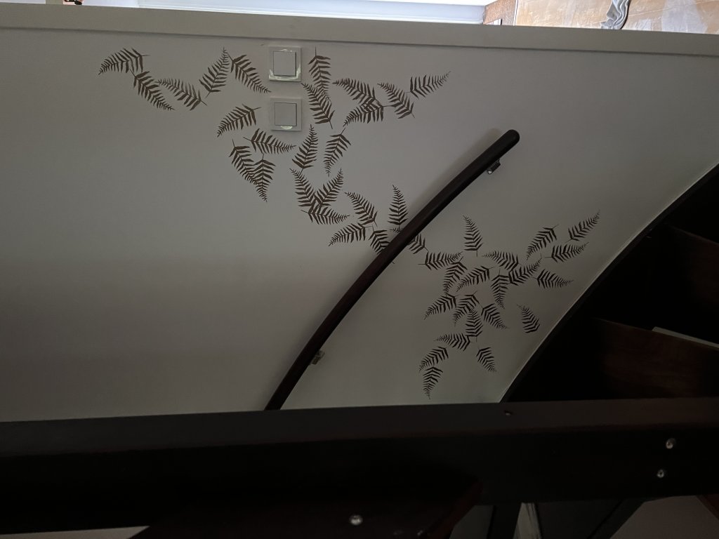 Spacious landing with a wardrobe, space for the washing machine and dryer, central heating boiler, and mechanical ventilation. There is one bedroom with a single bed and a dormer window, and one bedroom with a double bed.