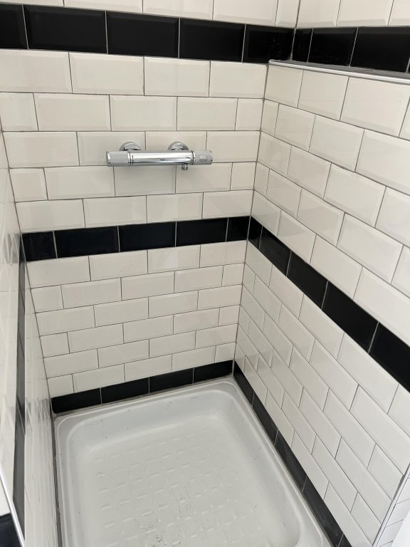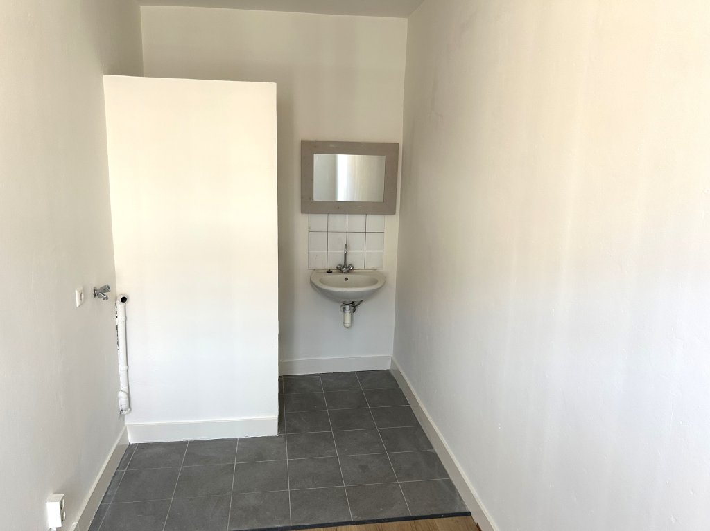 The second room contains the bathroom (a small part of that space) and features a private shower and sink (8.5 m²). This room can also be used as a bedroom, as only a small part of the space is a bathroom. The new kitchen has a combination oven, induction hob, and a fridge-freezer. The toilet is shared with 1 other resident (it is a non-self-contained living space).