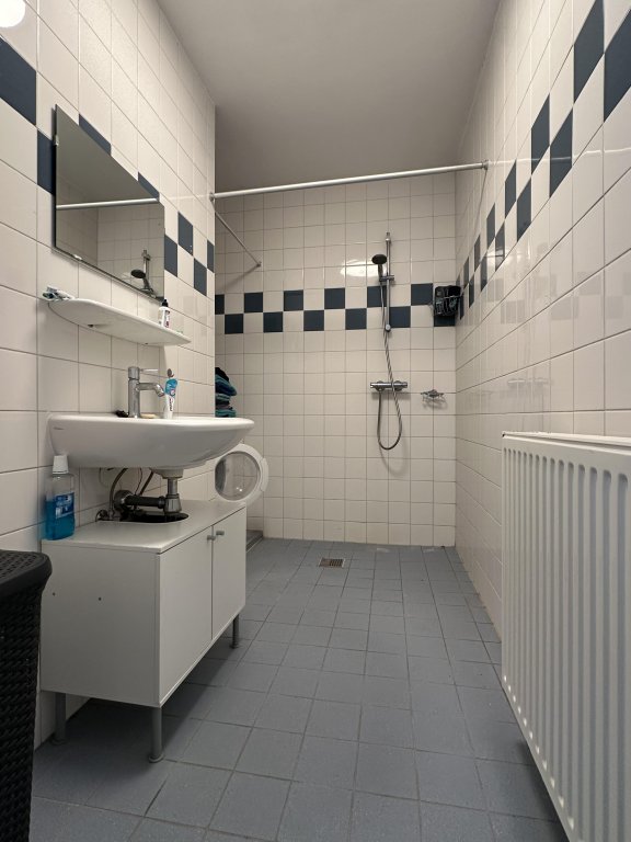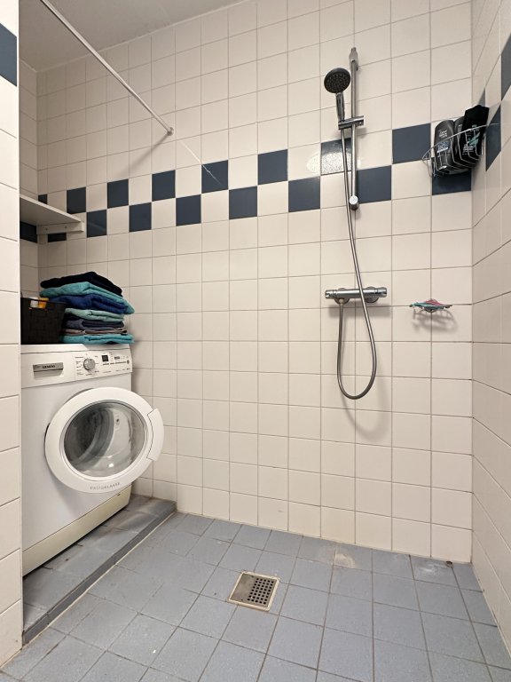 Entrance complex, stairs to the first floor. Apartment entrance, spacious hall with toilet and access to all rooms. Spacious, light living room. Closed neat kitchen with gas hob with extractor and dishwasher. Bright, spacious master bedroom with access to the spacious (8 m2), sunny balcony with a view over greenery. Neat bathroom with sink, shower and washing machine connection.