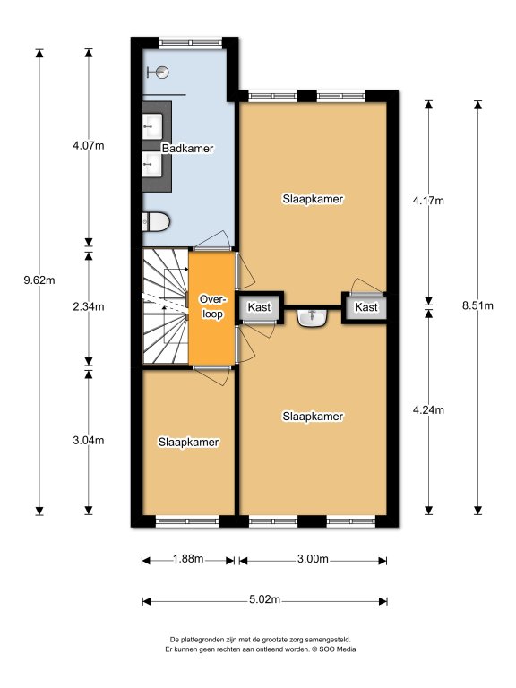 The house has five bedrooms and a loft, spread over two of the three floors. All rooms are neatly finished with light walls and parquet laminate flooring and offer sufficient space for sleeping, working or hobbies.