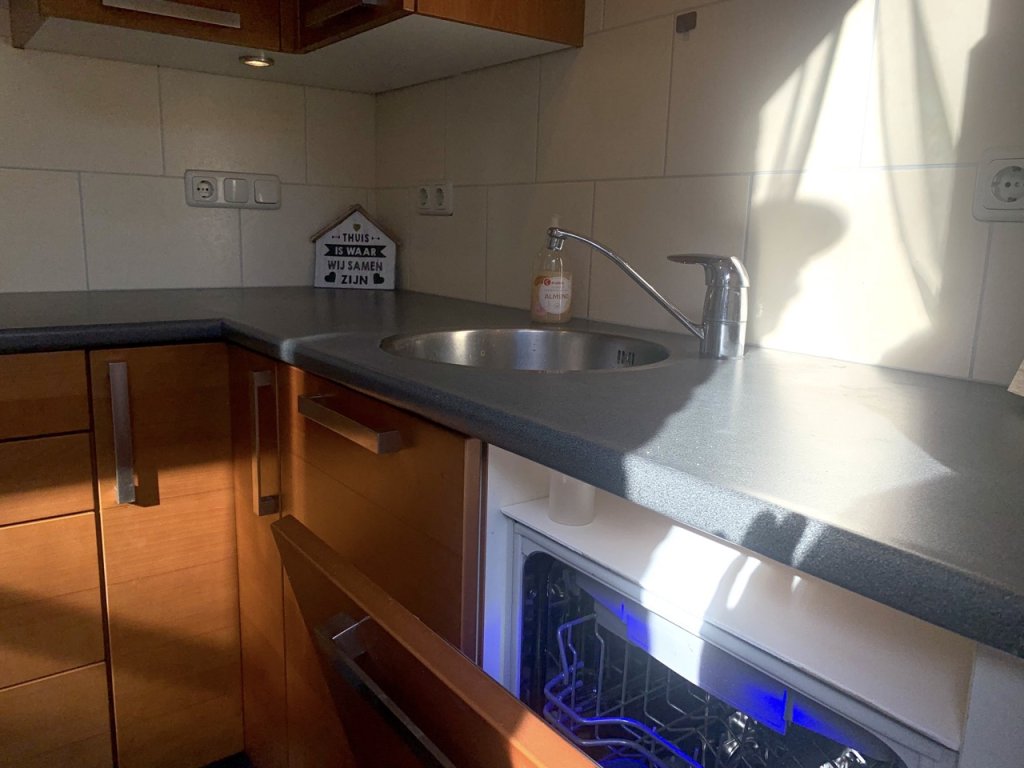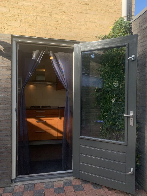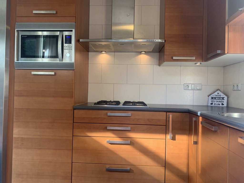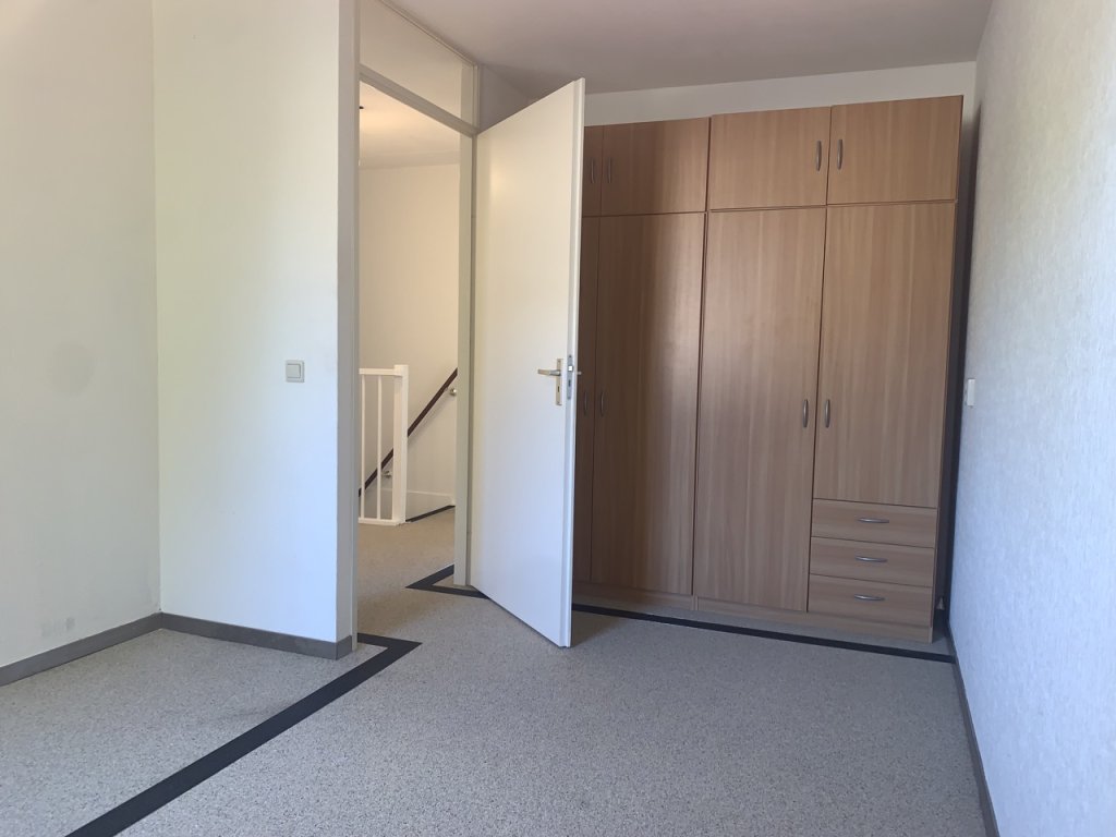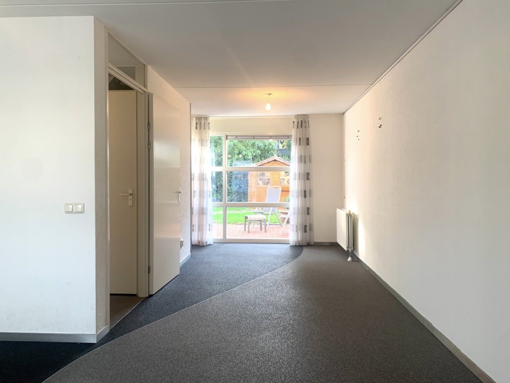 A warm welcome awaits in the spacious hallway with staircase, fuse box, and access to the WC. Step into the bright living room (approx. 30 m²) with a pleasant view of the quiet residential surroundings. The living room extends to the rear of the house, overlooking the green garden. Around the corner you’ll find the kitchen (approx. 5 m²), equipped with ample cupboard space, a fridge, a dishwasher, and a back door to the garden.
