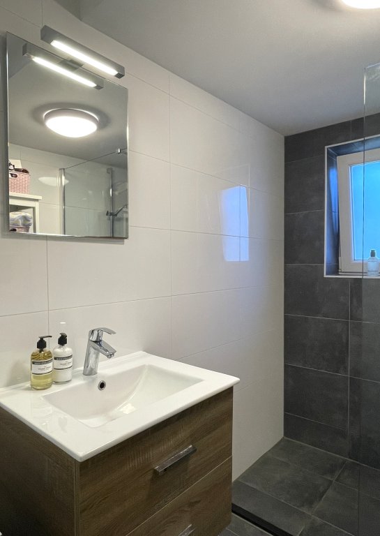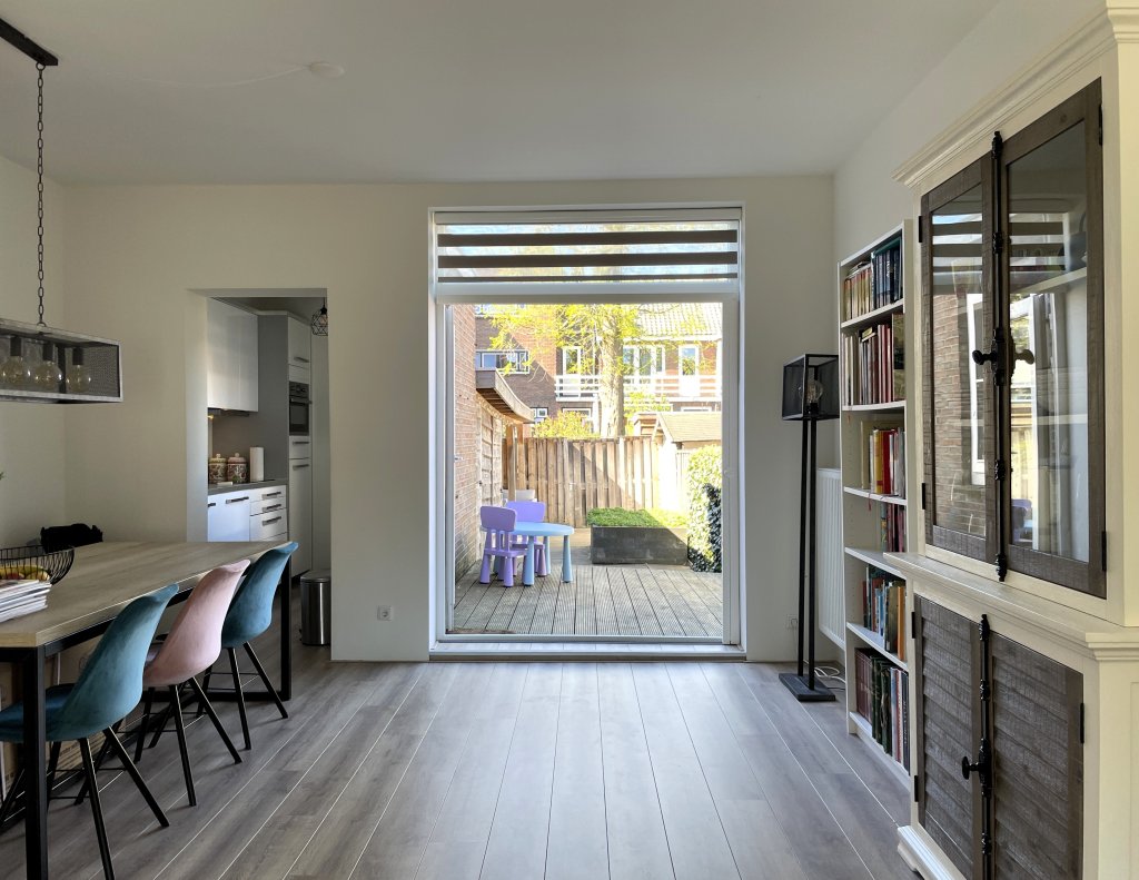 Step inside and you’ll immediately feel the spaciousness and light of the living room. The French doors open onto the backyard and ensure a seamless transition between indoors and outdoors. Perfect for a morning coffee in the sun or a cozy evening with friends. The open kitchen is modern and fully equipped. There is also a separate toilet.