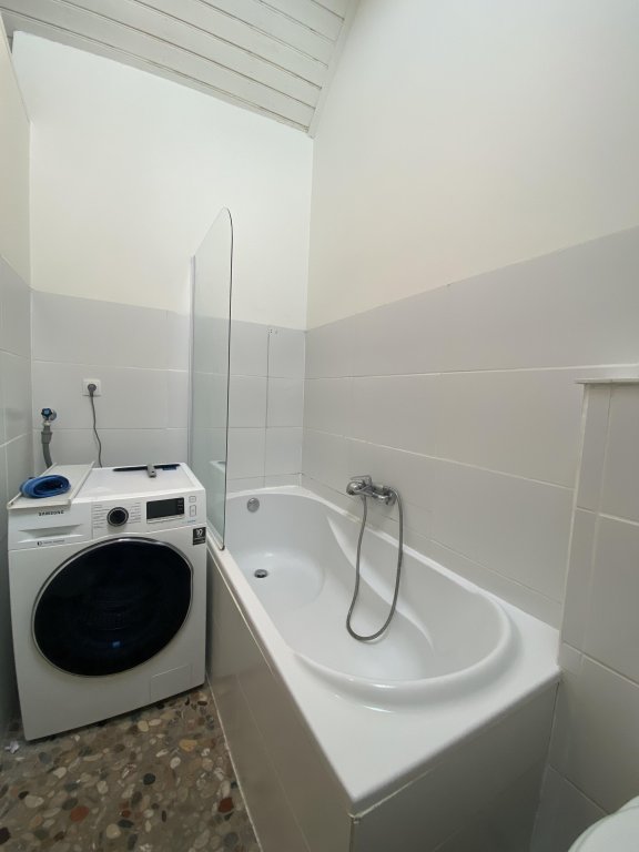 The apartment is located on the first and second floor. The apartment is ready to move in. The bright living-dining room with open kitchen has large windows. The kitchen has plenty of storage space, dishwasher, oven with 5 gas burners and the kitchen has a large Bosch fridge and freezer. At the rear located a roof terrace of approx 22m2!