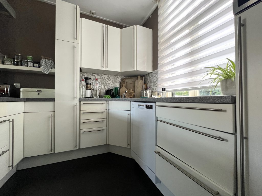 Entrance hall, toilet. Cozy living room with cozy wood stove and French doors to the garden. Spacious kitchen with underfloor heating. The modern kitchen is equipped with gas hob with extractor, fridge and freezer, combi-oven and dishwasher. Via en suite doors at the front of the house an extra room can be reached which is now used as an office. Also an attached bay window that now functions as a workplace. Handy utility room with sink and washing machine connections.