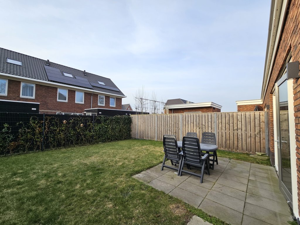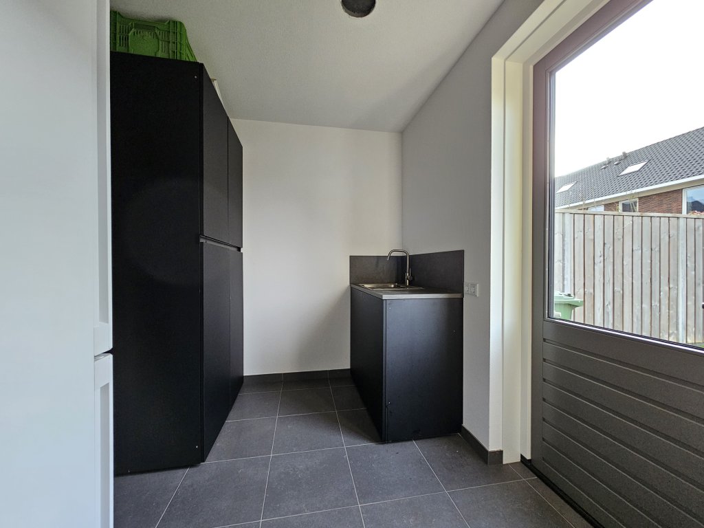 From the hall you step into the bright spacious living room. What immediately stands out are the well-finished ceilings, walls and floor and with the large windows and the patio doors a beautiful passage to the sunny backyard. On the ground floor you have enough space for a sitting area and a dining area, adjacent to the spacious modern kitchen with cooking island and cupboard wall with the necessary built-in appliances. Behind the kitchen there is a handy utility room in the garage at home.