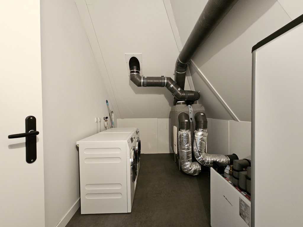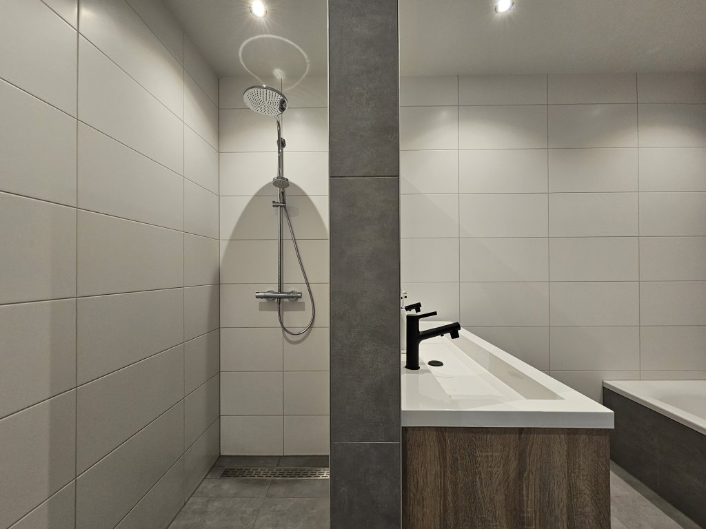 Via the staircase you reach the landing with access to three spacious bedrooms and a modern bathroom. This is finished in the same trendy colours and materials as the toilet on the ground floor and on the first floor. Here you have access to a spacious walk-in shower, a bath and a double washbasin with furniture. The balanced ventilation ensures fresh air.