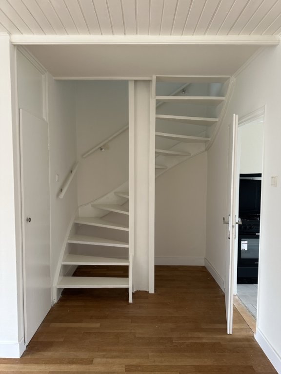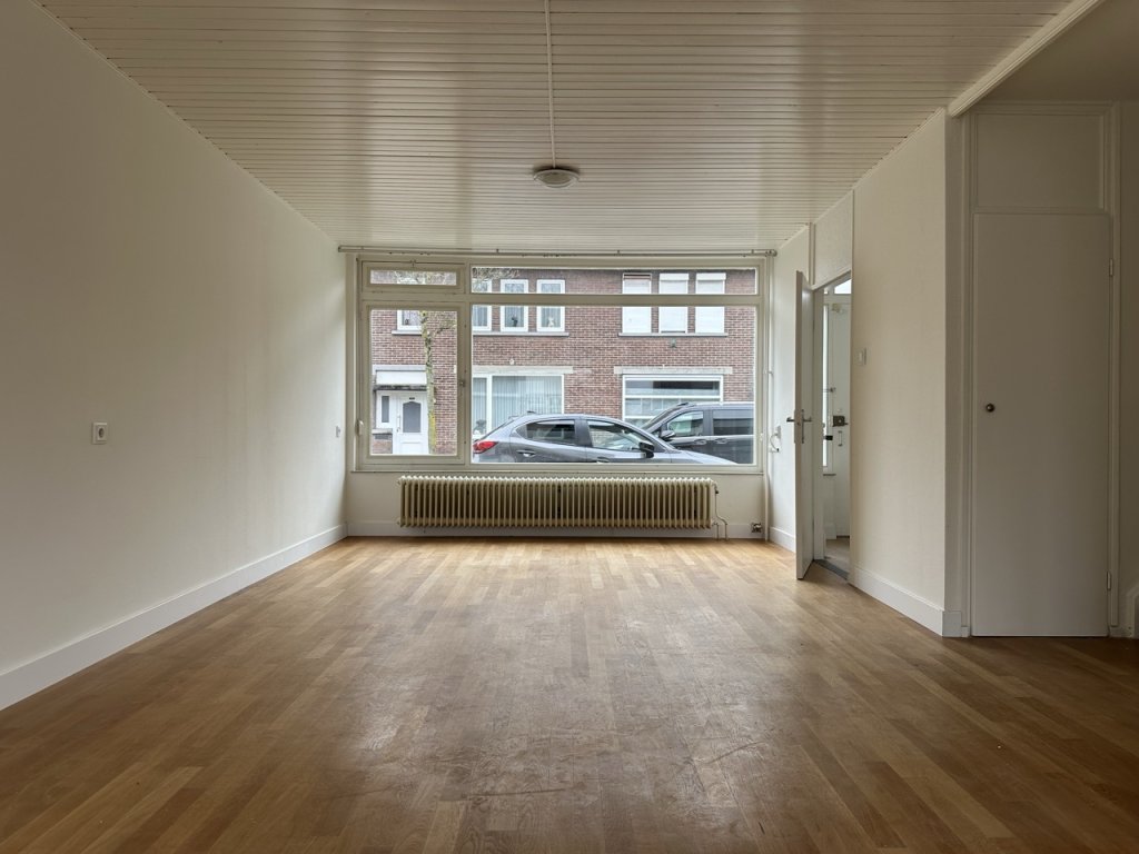 Upon entering, you walk through a hallway with a toilet into the living room. The room receives generous daylight from both sides. The separate kitchen, equipped with a new stove, has a back door. The living room also has a door leading to the garden. The entire floor was recently painted and fitted with modern power outlets and light switches. The large front window offers a pleasant view of the lively street.