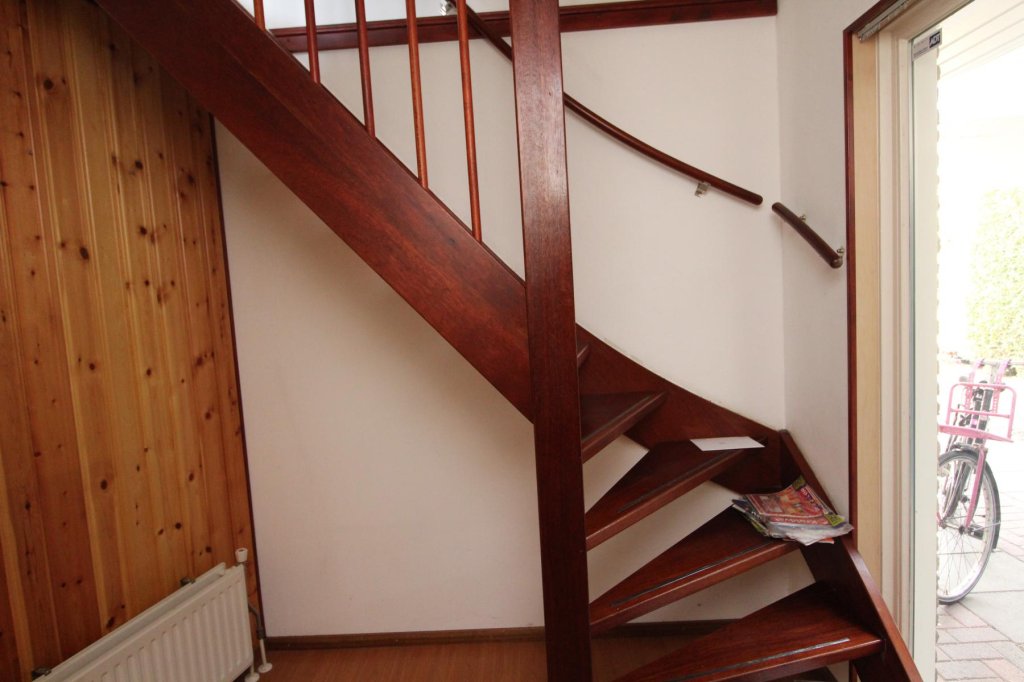 From the front door you enter the hall, from where you have access to the fuse box, the toilet, the living room and the staircase. The living room is spacious, light and can be arranged in various ways. The kitchen is located at the rear and is equipped with various appliances including a cooker, extractor hood, dishwasher and fridge / freezer. The garage is accessible from the rear.