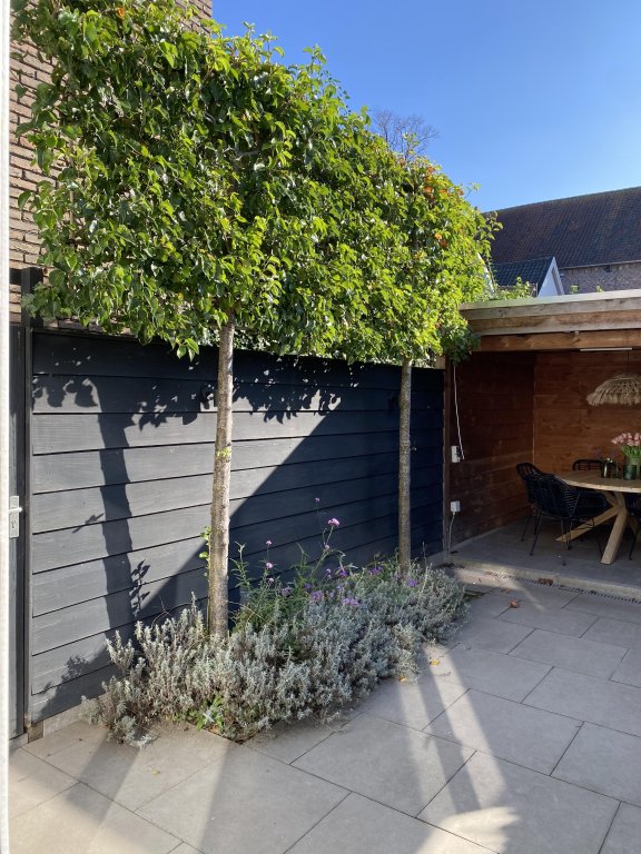 The low-maintenance, south-facing garden offers plenty of privacy and features a covered terrace, storage shed, and a back entrance through a gate — perfect for relaxing and enjoying the outdoors.