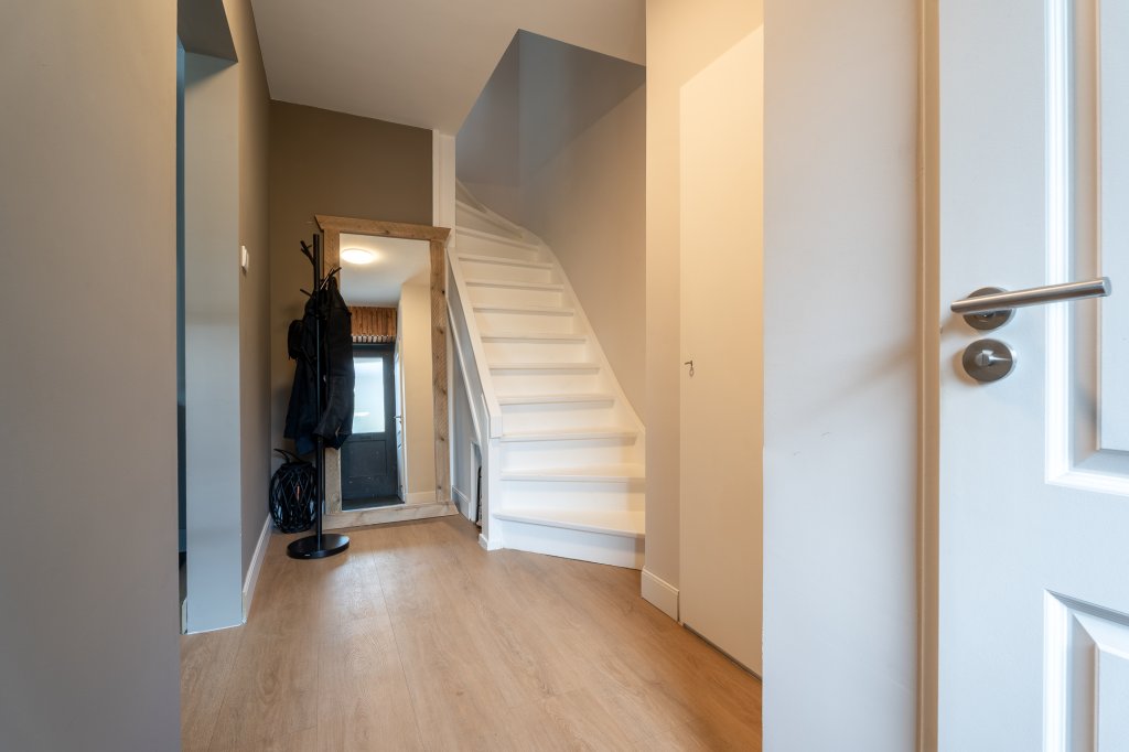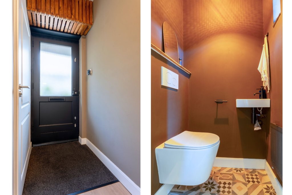 Upon entering the house, you step into the hall, where you have access to the meter cupboard, the toilet and the staircase to the first floor.