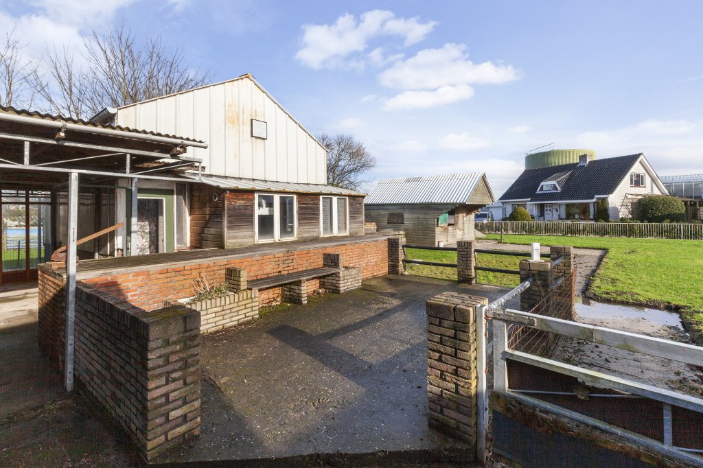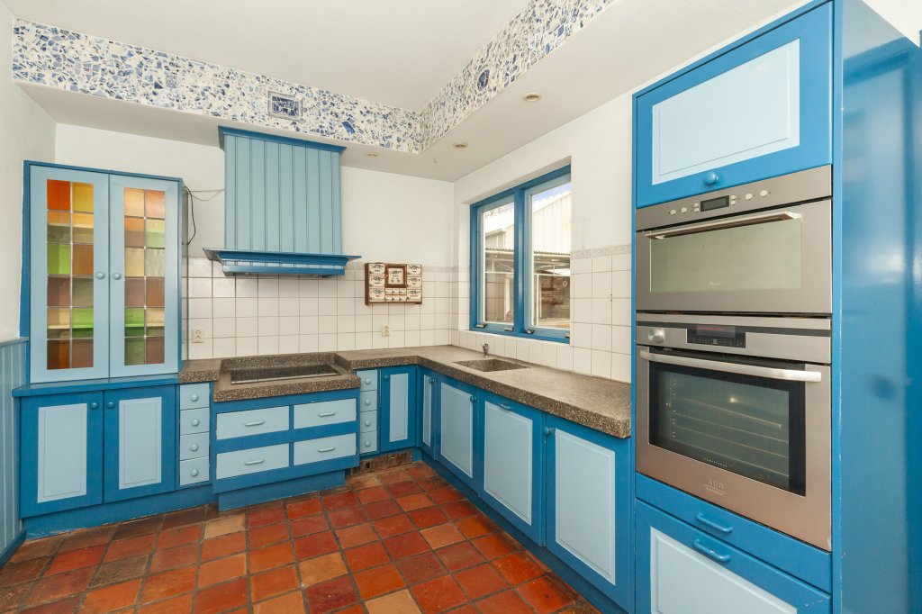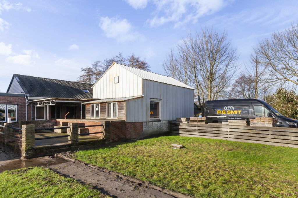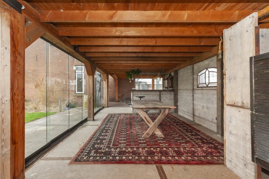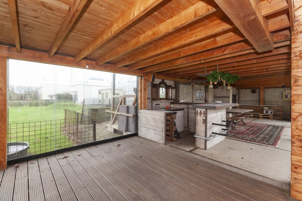 Via the utility room, where the large American fridge-freezer is located, with space for the washing machine/dryer, you reach the large garage. The heated garage also has an access door at the rear, making this space ideal for use as office space for, for example, a service company (there is also a room above the garage). Through the French doors of the living room, you enter the covered conservatory with a bar; a refrigerator is also present. There is also a toilet in the conservatory.