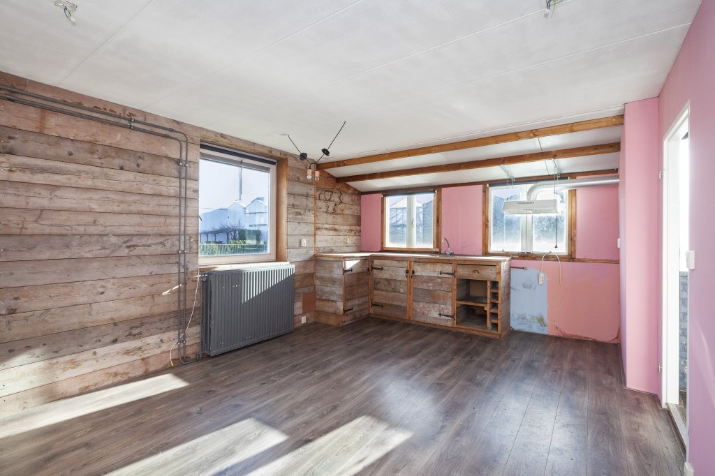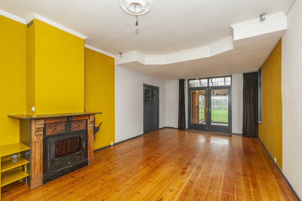 The spacious living room, with French doors opening onto the garden and wooden flooring, features many windows and offers a beautiful view of the large garden. For decorative purposes, there is a wood-burning stove; furthermore, there are radiators and a convector pit for heating. Through an atmospheric archway, you reach the kitchen at the back of the living room. The spacious kitchen, with a stone countertop, is fully equipped with an electric hob, dishwasher, oven, microwave, and offers plenty of storage space. On the ground floor, at the rear, is a (1st) spacious bedroom with a double bed, a wardrobe, and a washbasin. There is also a shower room.