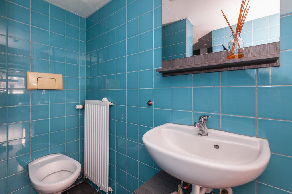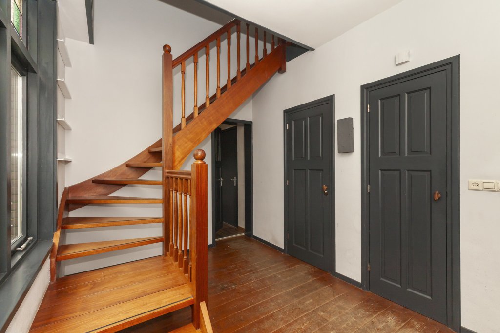 Via the large front garden, you enter through the spacious hall, where the stairs to the upper floor are located. In the hall are the toilet (with urinal and washbasin), the meter cupboard (with a new fuse box and a water softener), and the entrance to the basement.