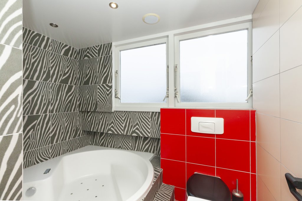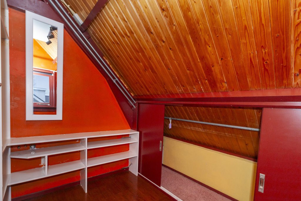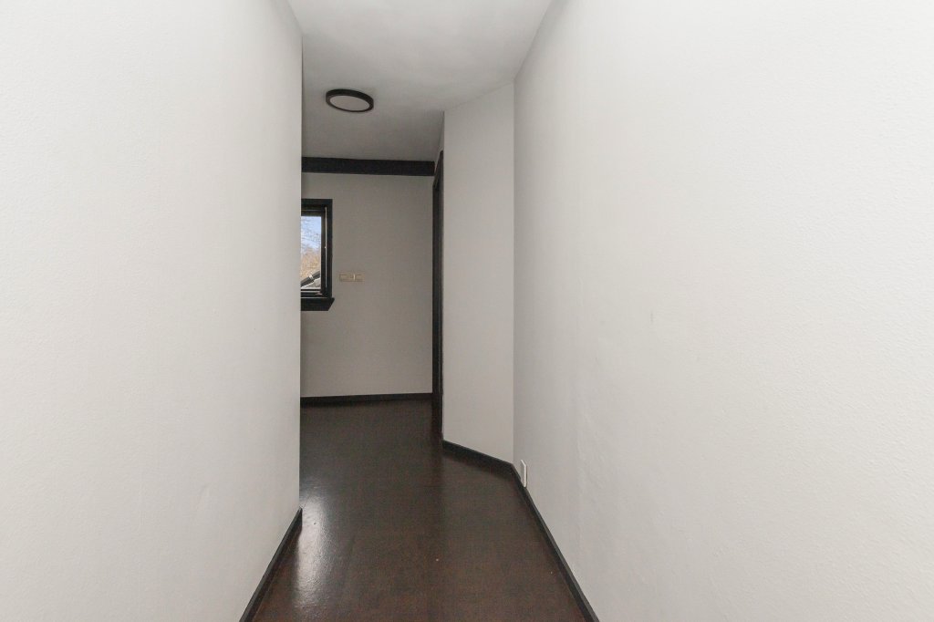 You go upstairs via the stairs. There is a large (2nd) bedroom with a walk-in closet and a built-in wardrobe. Additionally, there is a study (or usable as a 3rd bedroom) with a desk and cupboards. The 4th bedroom is at the front and has laminate flooring. Furthermore, there is a spacious bathroom with a vanity unit, corner bath, walk-in shower, and 2nd toilet. There are roller shutters on this floor.