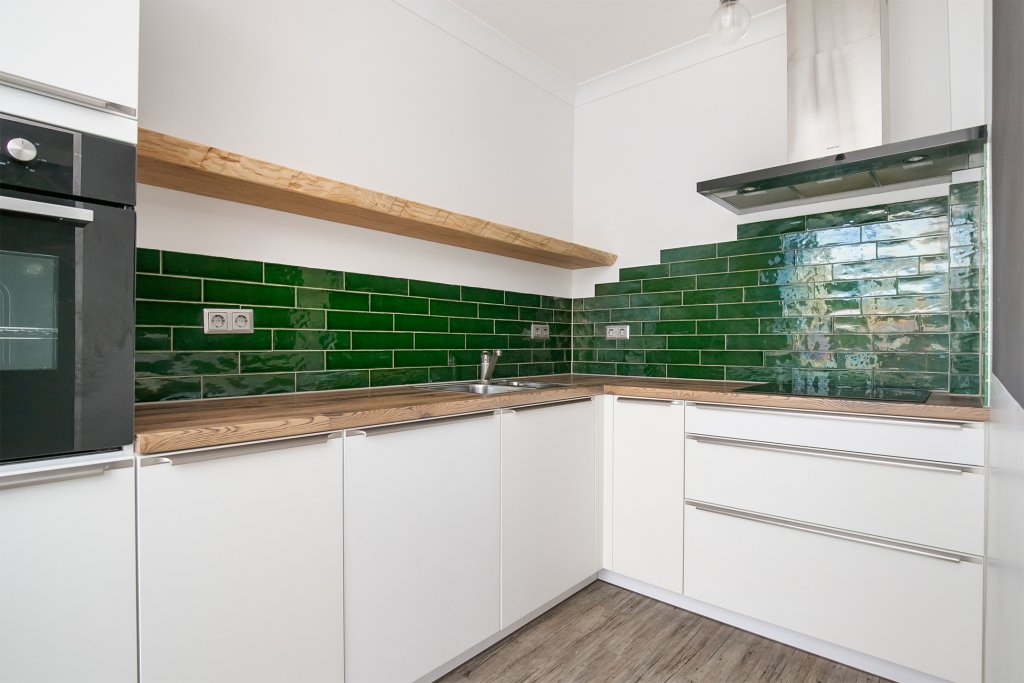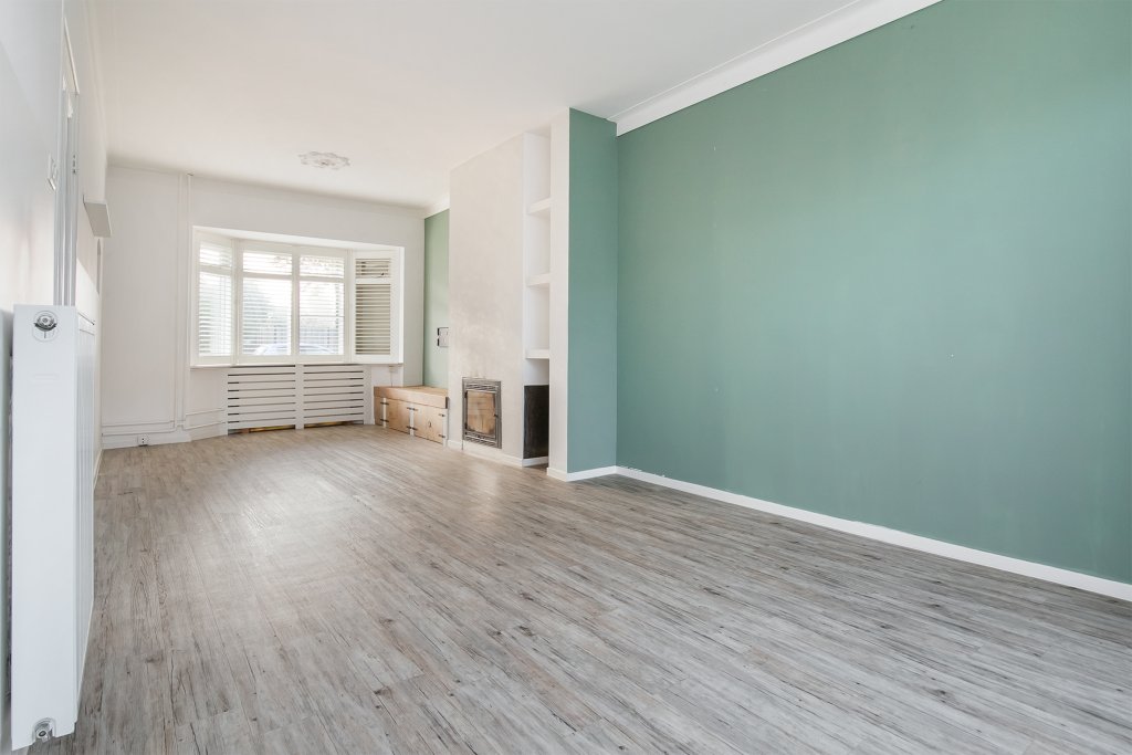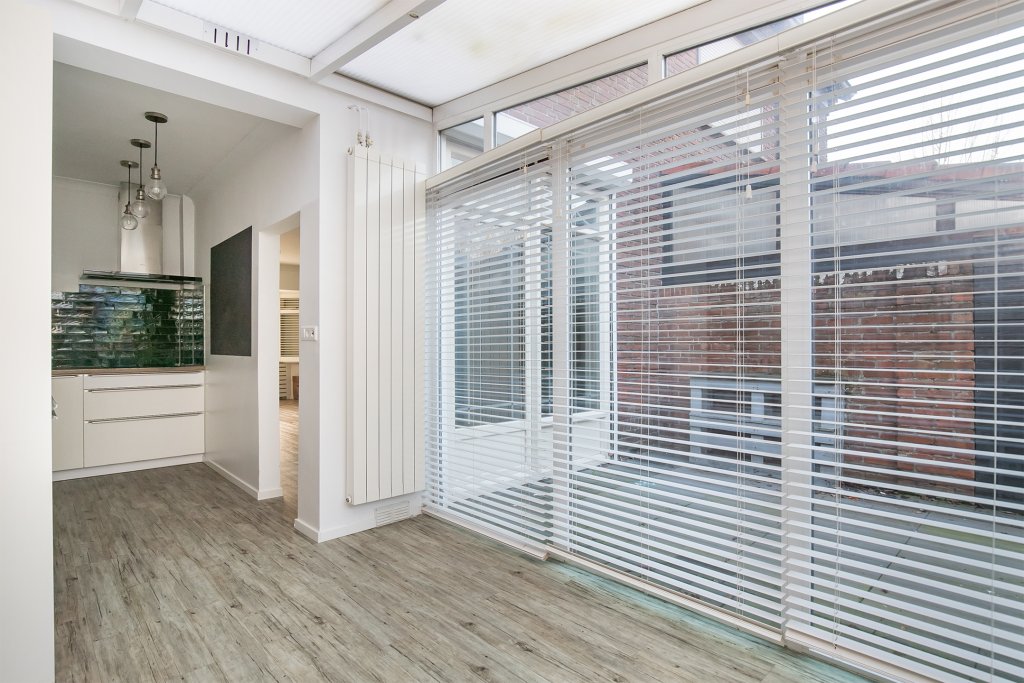 A bright living room (light laminate floor and light walls), with a semi-open kitchen around the corner towards the rear of the house with access to the conservatory area. The kitchen is equipped with a dishwasher, combi-over and fridge-freezer. The conservatory is fully equipped with glass panels on both the long and short sides.