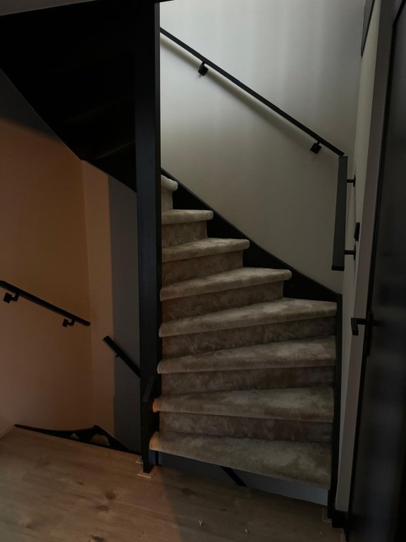 The first floor has a spacious landing with 3 bedrooms, one of which is furnished as a spacious walk-in closet and one as an office. The bathroom has custom-made bathroom furniture with a wide sink where you can brush your teeth together, toilet and spacious walk-in shower.