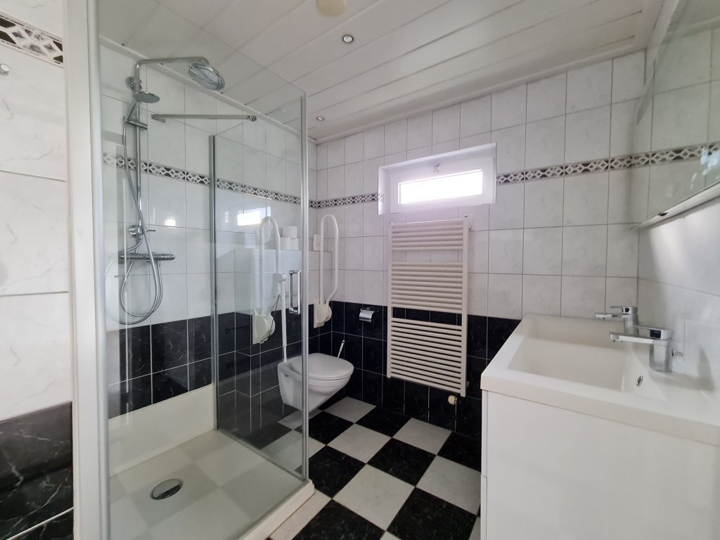 In front of the house you have the possibility to park several cars on site. The house is largely equipped with plastic frames with double glazing. The backyard is beautifully landscaped with a pond.