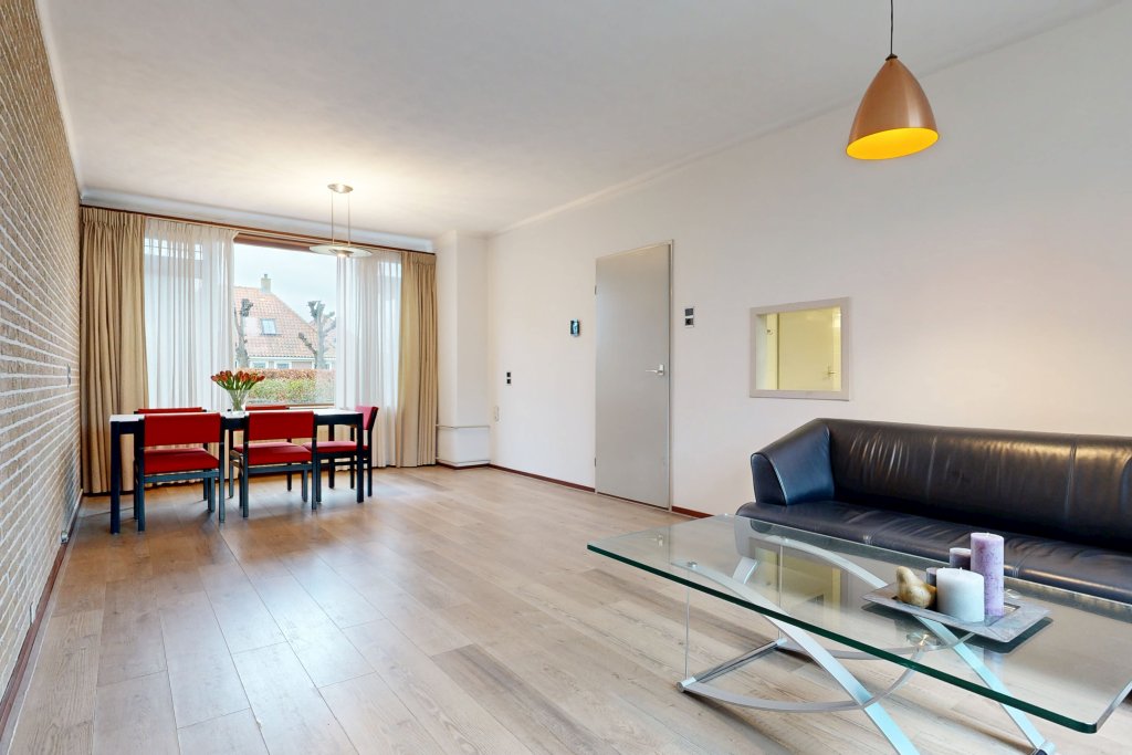 Bij binnenkomst tref je de hal met toilet en toegang tot de lichte, grote doorzonwoonkamer. De aparte, praktische keuken bevindt zich aan de achterzijde en biedt direct toegang tot de tuin. De heerlijke, zonnige achtertuin is een fijne plek om te ontspannen en te genieten van het buitenleven.