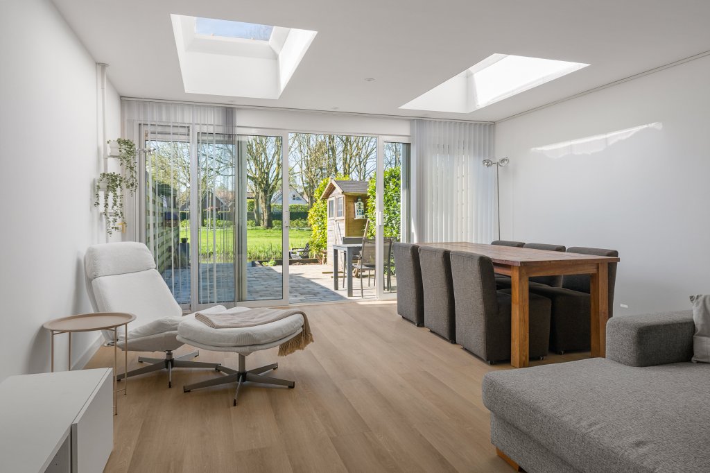 Spacious four-bedroom family home featuring two luxurious bathrooms, private on-site parking, and a sun-drenched south-facing backyard with unobstructed views over an ornamental pond. Situated in the highly sought-after Meerwijk-Oost neighborhood in Uithoorn, on a quiet, child-friendly cul-de-sac with a playground nearby.