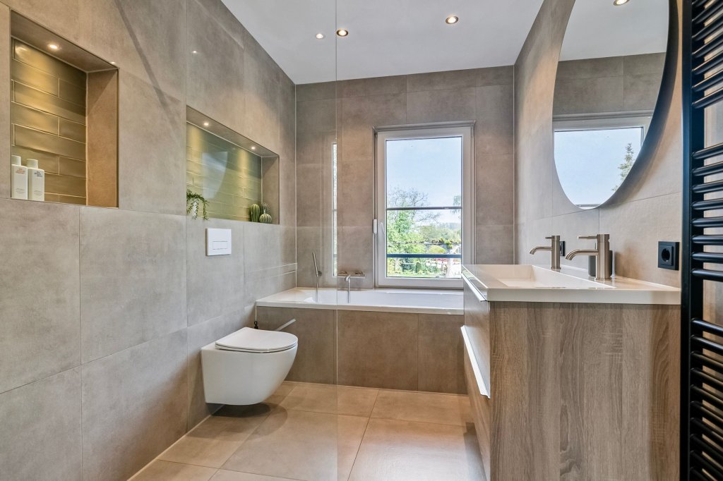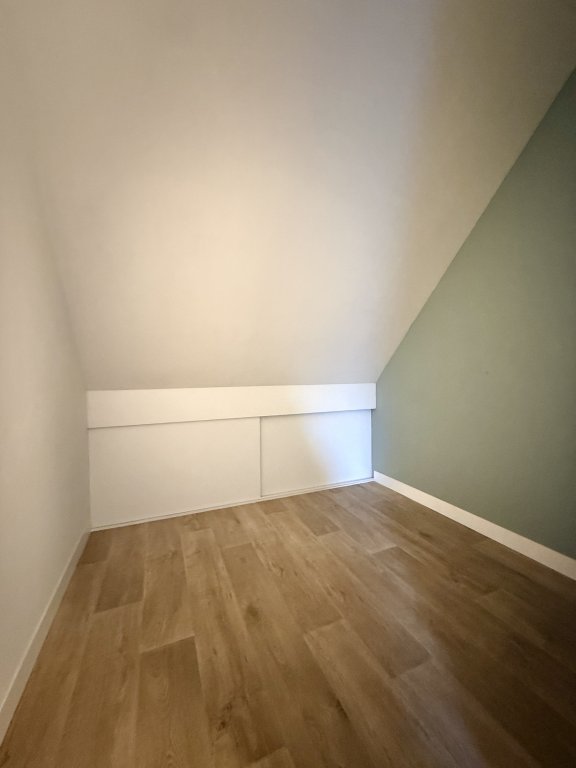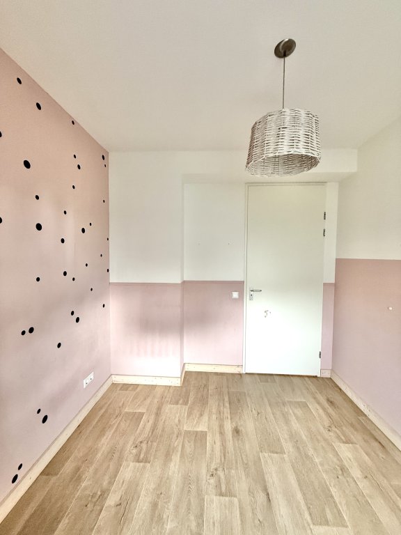 The bright living room with wooden floor, bay window and sliding doors to the terrace feels warm and spacious. The modern kitchen with cooking island and built-in appliances forms the heart of the house. On the first floor, you will find three bedrooms and the beautiful new bathroom with bathtub, walk-in shower and double sink. The second floor offers another spacious bedroom, extra storage space and room for washing appliances.