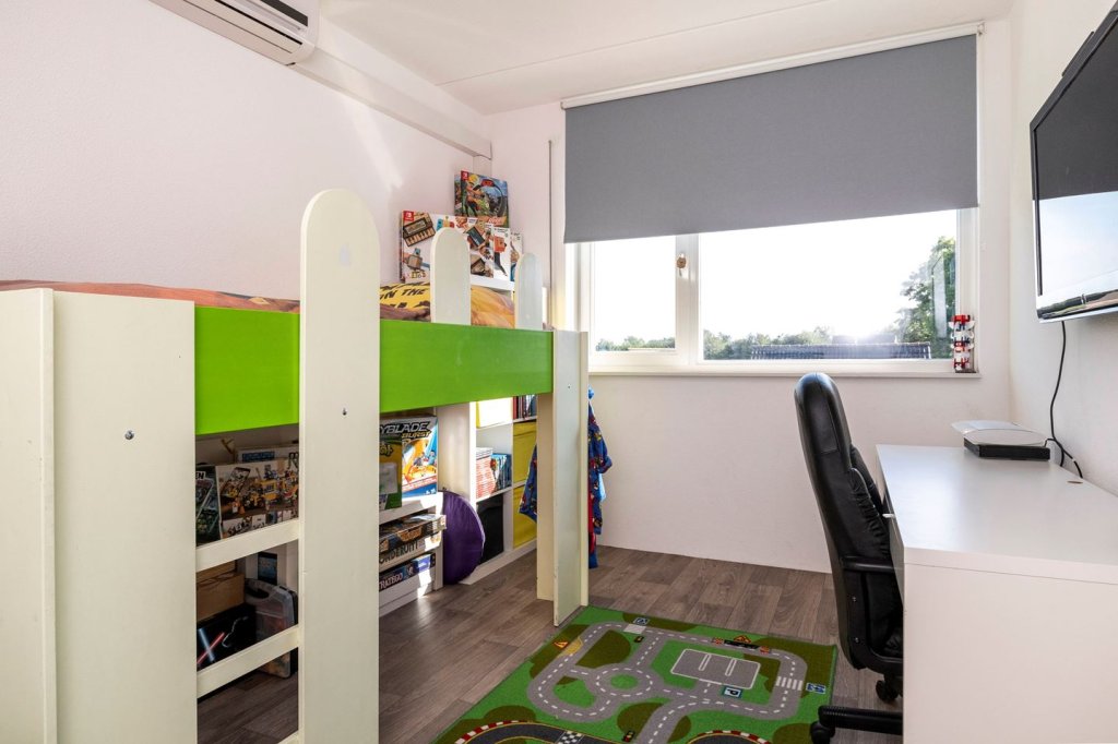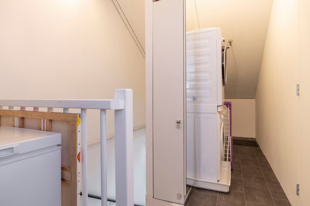 Through a staircase is the master bedroom on the second floor accessible. This floor is divided into 2 compartments. The attic is finished with tarpaulin as a floor finish. In the attic is the washer and dryer and the location of the Remeha Calenta boiler. The master bedroom is finished with a laminate floor and equipped with air conditioning (bj. 2020). Also, one bedroom on the second floor with air conditioning. On both sides of this bedroom are knee pads, which provide extra storage space.