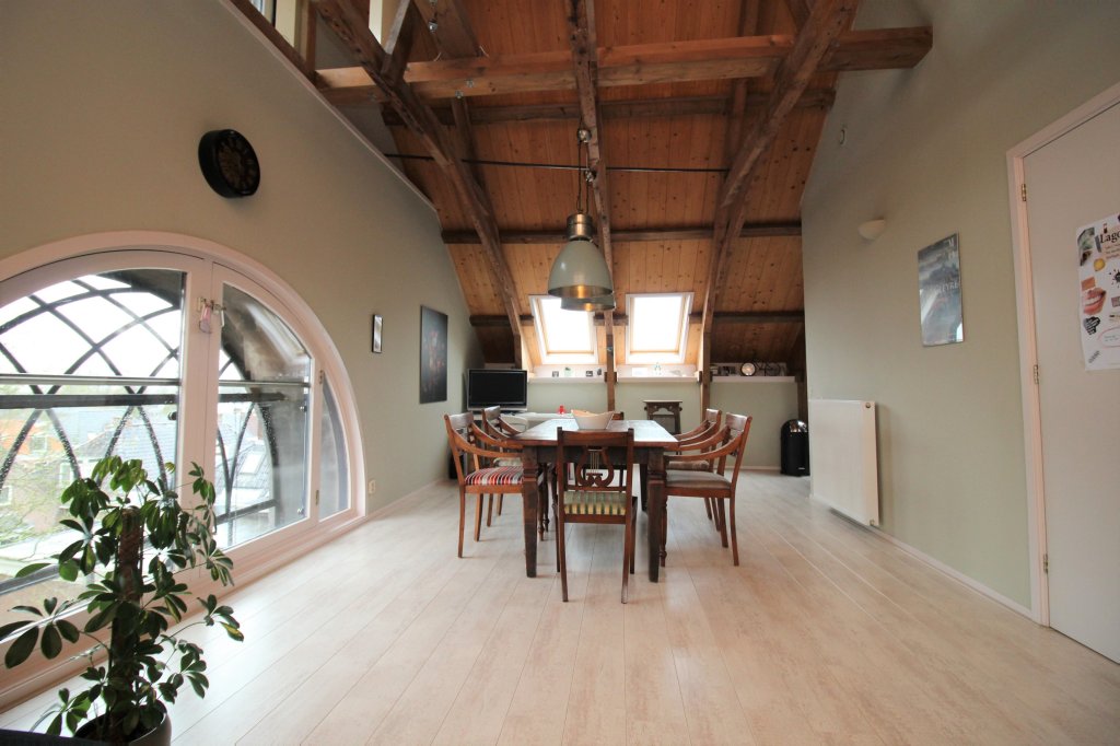 This fantastic apartment is for rent in the middle of the village center of Wergea. The apartment is located in the ridge of the church and has 2 bedrooms, bathroom with bath and modern kitchen. From the living room you have a fantastic view over Wergea with its waterway and farmlands. Wergea is a 10-minute drive from Leeuwarden and a few minutes from the ring roads of Leeuwarden. The apartment has been completely renovated and is well insulated. The traditional church elements have been preserved, so that the authentic living atmosphere has remained intact.