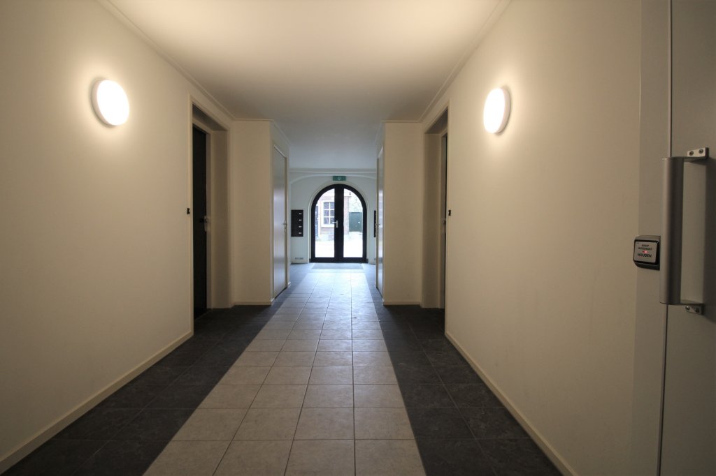 Central hall with stairs and elevator. Own front door and house number: Spacious hall with passage to 2 spacious bedrooms. Modern bathroom with shower, washbasin and bath. Very spacious living room with high beamed ceiling and modern open kitchen with, among other things, refrigerator with freezer, combi oven, 4-burner hob and extractor hood. Large windows in the living room with lots of light and a beautiful view. Parking is possible next to the building. Public transport within walking distance.