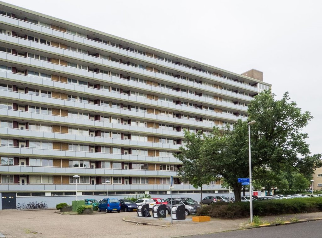 The spacious entrance hall leads to the elevator that takes you to the apartment. What immediately strikes you when you enter the living room at number 928 is the unobstructed view and the light that floods into the apartment. This is further emphasized by the sleek plastered walls and ceilings. The hallway of the apartment leads to the spacious living room and open kitchen with various appliances, including a dishwasher, gas stove, refrigerator, and oven. The bedroom is accessible from the living room. There is plenty of daylight thanks to the large windows. The living room gives access to the extra-large balcony where you can relax after a long day. The bathroom is simple but neat and equipped with all conveniences, including a toilet and bathtub. Laminate flooring has been laid throughout the apartment. There is a storage room on the ground floor.