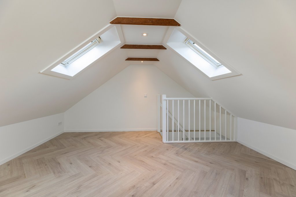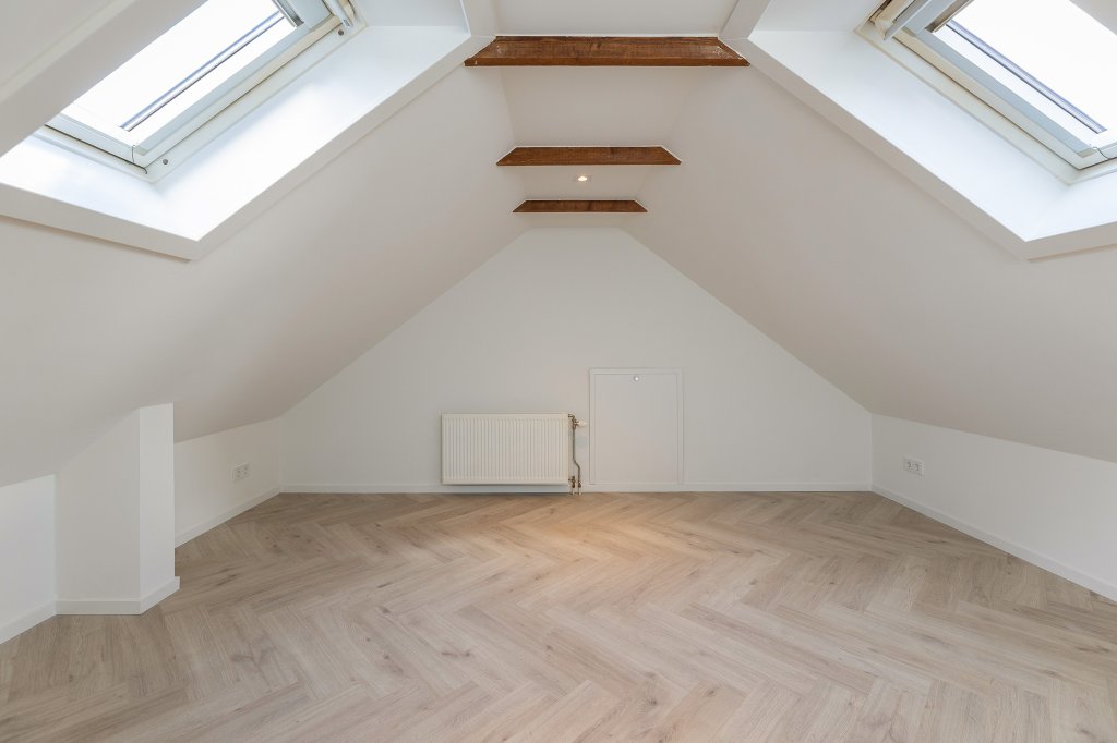 One of the rooms provides access to a fixed staircase leading to the attic. This space is generously sized and perfectly suitable as an additional bedroom, workspace, or guest room.