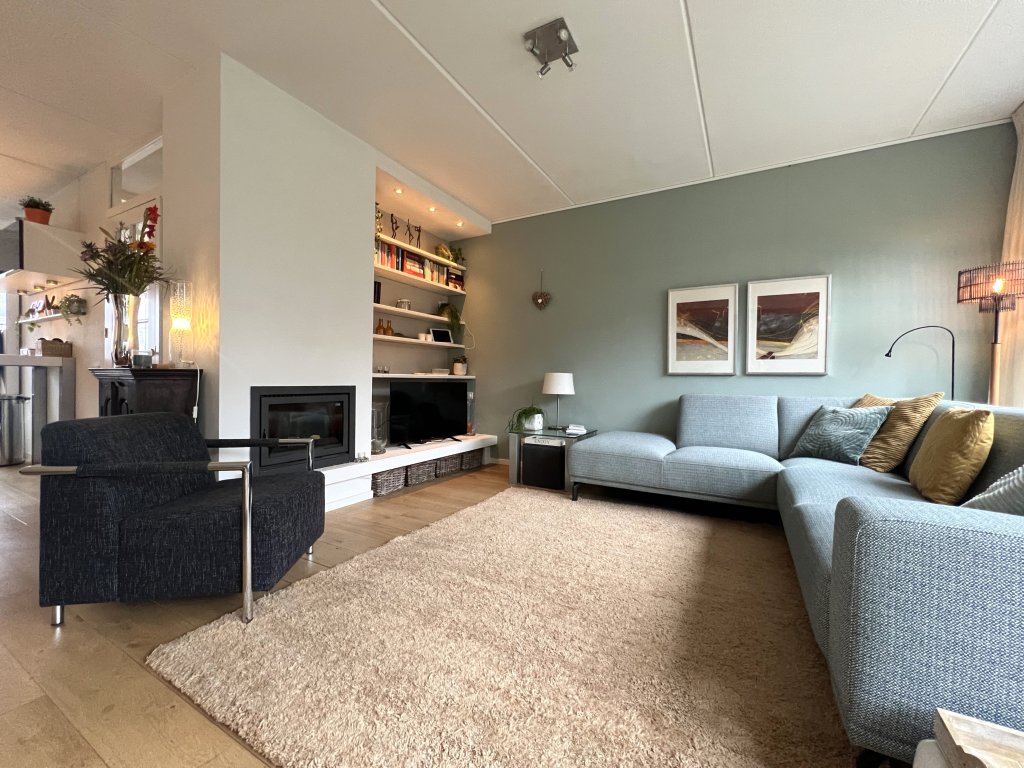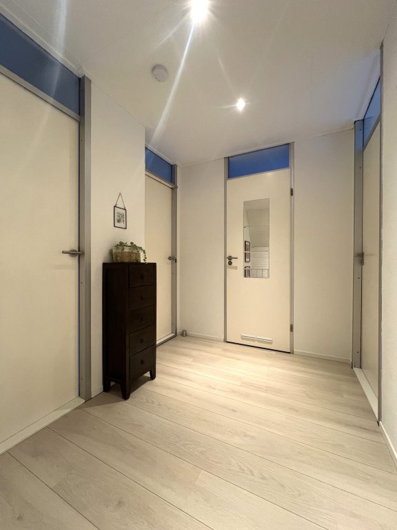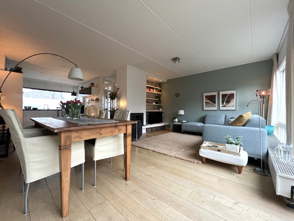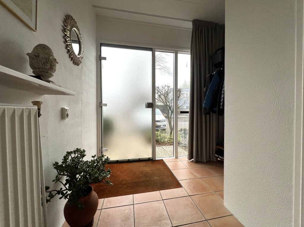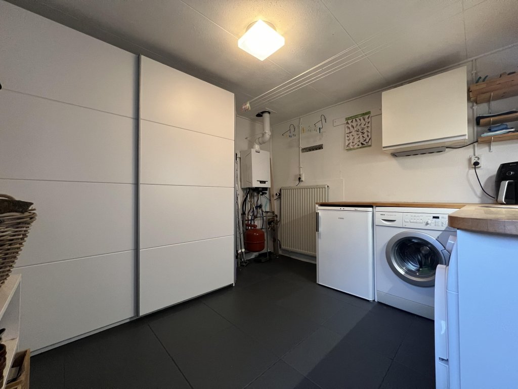 Entrance, spacious hall, toilet. Spacious, bright living room overlooking the beautiful garden. The living room has air conditioning for heating and cooling. Near the living room is a separate work/hobby room.